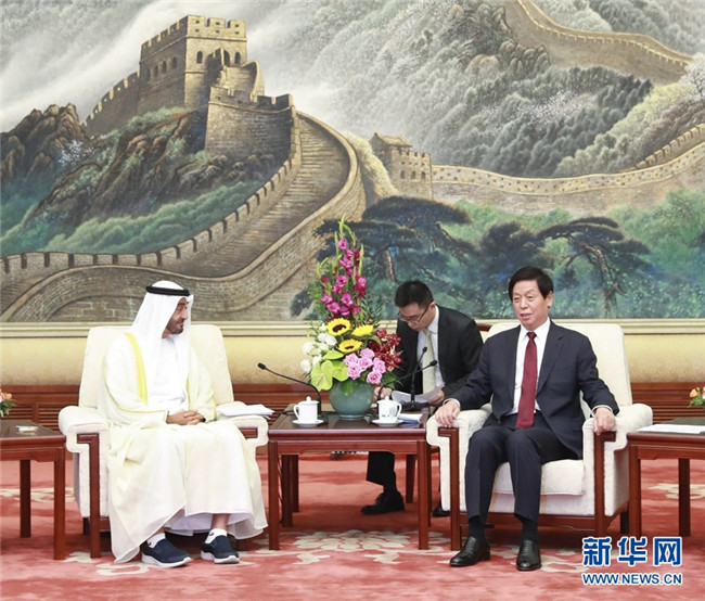 全國(guó)人大常委會(huì)委員長(zhǎng)栗戰(zhàn)書(shū)22日在人民大會(huì)堂會(huì)見(jiàn)阿聯(lián)酋阿布扎比王儲(chǔ)穆罕默德。