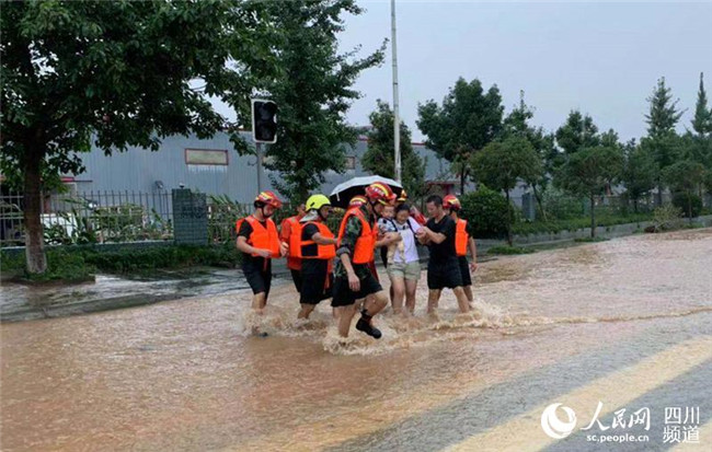 今日上午,四川省眉山市仁壽縣視高鎮(zhèn)遭遇強降雨,從凌晨4點左右開始大降雨,早晨8點左右積水嚴(yán)重。上午9點35分,視高專職消防隊接到報警稱在視高大道附近有5名群眾被困家中,其中1名1歲幼兒突發(fā)高燒,急需送往醫(yī)院救治。
