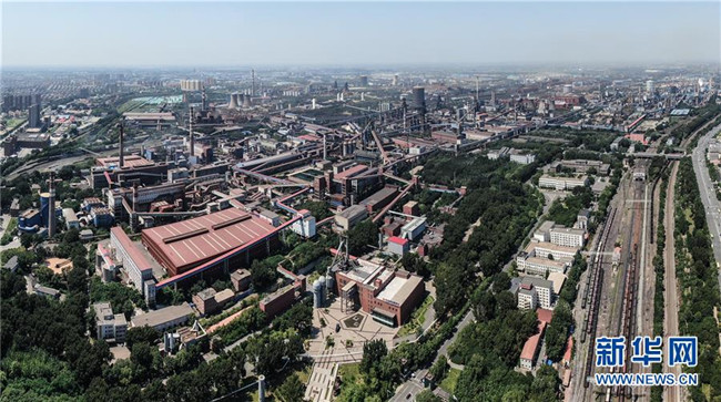這是7月4日無人機拍攝的鞍鋼主廠區(qū)。新華社記者 潘昱龍 攝