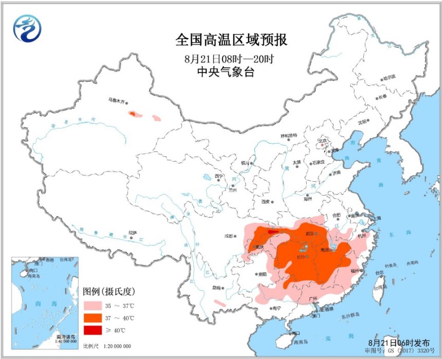 未來三天,西南地區(qū)東部、江漢、江南、華南中北部等地將有高溫天氣。中央氣象臺8月21日06時(shí)繼續(xù)發(fā)布高溫黃色預(yù)警。預(yù)計(jì)8月21日白天,江漢大部、江南大部、四川盆地東部、重慶、貴州東部、華南中北部等地最高氣溫35~36℃,其中,湖北中南部、湖南大部、江西大部、四川東北部、重慶大部、廣西東北部等地的部分地區(qū)最高氣溫37~39℃,重慶北部局地可達(dá)40℃以上。