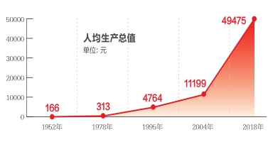 新中國成立以來,伴隨著新疆經(jīng)濟社會的快速發(fā)展,人均生產(chǎn)總值由1952年的166元到1987年邁上了1000元的平臺,2004年突破10000元大關(guān),標(biāo)志著新疆經(jīng)濟進入了一個新的歷史階段。2018年攀升到49475元,成功由低收入地區(qū)跨入中等收入地區(qū)行列。(張永)