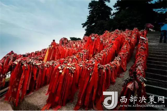 金鎖關(guān)是建在三峰口的一座城樓般石拱門,是經(jīng)五云峰通往東、西、南、中四峰的咽喉要道,鎖關(guān)后則無(wú)路可通,所以又稱為通天門。關(guān)內(nèi)關(guān)外登山路兩側(cè)鐵索上掛滿的情侶鎖、平安鎖重重疊疊,紅繩彩線迎風(fēng)搖曳,也是關(guān)前一道美麗的風(fēng)景。