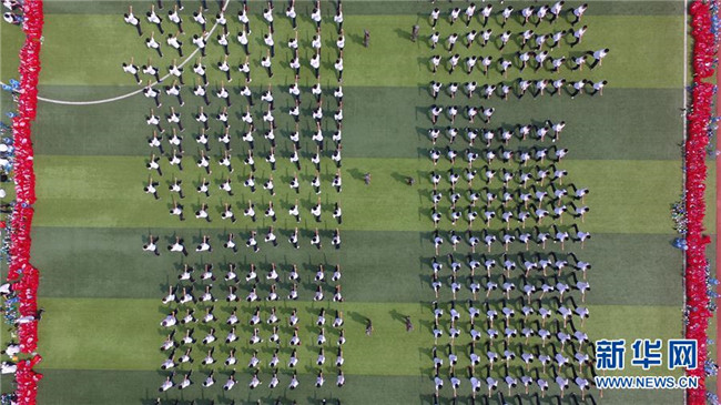 8月27日,河北省衡水市第二中學(xué)高一新生進(jìn)行入學(xué)軍訓(xùn)(無(wú)人機(jī)拍攝)。新華社記者朱旭東攝