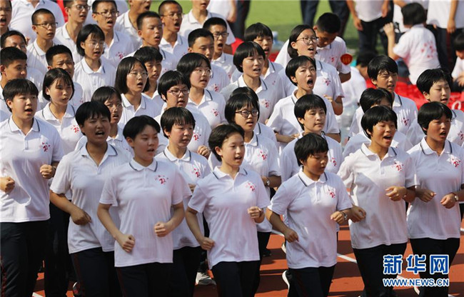 8月27日,河北省衡水市第二中學(xué)高一新生在參加列隊(duì)跑步訓(xùn)練。新華社記者朱旭東攝