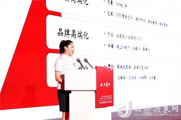 發(fā)布會(huì)上,新一代紅西鳳涅槃重生,閃耀登場(chǎng)。紅西鳳是西鳳集團(tuán)首推高端獨(dú)立品牌,選五谷、取甘露、釀陳窖、藏酒海、遵古鳳香秘法釀造之藝,呈現(xiàn)了西鳳酒獨(dú)具魅力的典型風(fēng)格;一襲正統(tǒng)中國(guó)紅,色彩鮮明、熱烈奔放、賦滿活力,展現(xiàn)了其優(yōu)雅、高端、時(shí)尚、活力的品牌個(gè)性。她圓形瓶底屹立寰宇,寶塔狀瓶身直沖云霄,層層進(jìn)?。缓〞沉芾斓闹袊?guó)紅,迸發(fā)出新生的喜悅。“品牌即品質(zhì),品質(zhì)即未來(lái)”。