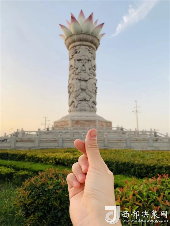 圖為華山游客中心前的“寶蓮燈雕塑”