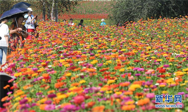 9月4日,游客在長春市蓮花山生態(tài)旅游度假區(qū)花田里賞花。