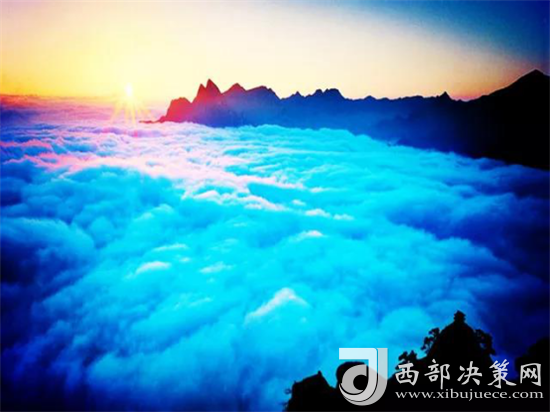 那白茫茫的云海千變?nèi)f化。有時(shí),天空晴朗,山腰間浮著幾朵白云,像鳥(niǎo)兒在盤(pán)旋;有時(shí),一帶云霧纏繞在峰嶺間,絲絲縷縷,如纖纖玉女般纏綿而多情;有時(shí),山谷間被云霧填滿,僅露出一個(gè)山尖兒置身其間宛若在仙宮別苑;有時(shí),云海茫茫,云波涌蕩,恍若隔世;有時(shí),云霧包裹了山巒,人就在云中,移步生煙、吐納含瑞被云霧挾裹著,忘記了塵器的凡俗,忘記了世事的究雜,身心全都融化在了這超然的情境當(dāng)中。
