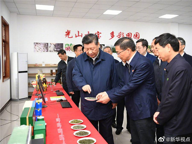 習(xí)近平總書記17日上午前往河南省光山縣司馬光油茶園和文殊鄉(xiāng)東岳村,考察調(diào)研當(dāng)?shù)孛撠毠?jiān)工作成效和中辦在光山縣扶貧工作情況,看望慰問老區(qū)群眾。(文字記者:張曉松、朱基釵 攝影記者:鞠鵬、謝環(huán)馳)