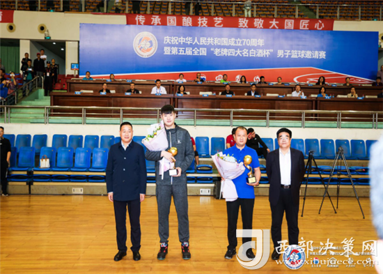 9月19日晚,由貴州茅臺(tái)酒廠(集團(tuán))有限責(zé)任公司、山西杏花村汾酒集團(tuán)有限責(zé)任公司、陜西西鳳酒廠集團(tuán)有限公司與瀘州老窖股份有限公司共同主辦,瀘州老窖股份有限公司承辦的慶祝中華人民共和國成立70周年暨第五屆“老牌四大名白酒杯”男子籃球邀請賽(以下簡稱“男籃邀請賽”)在酒城瀘州奧林匹克體育公園圓滿閉幕。貴州茅臺(tái)酒股份有限公司監(jiān)事會(huì)主席羅國慶,山西杏花村汾酒集團(tuán)有限責(zé)任公司黨委委員、董事、工會(huì)主席李明強(qiáng),陜西西鳳酒廠集團(tuán)有限公司工會(huì)主席陳軍紅,瀘州老窖股份有限公司黨委副書記、總經(jīng)理林鋒及黨委副書記、紀(jì)委書記、工會(huì)主席江域會(huì),信息總監(jiān)蘇王輝等領(lǐng)導(dǎo)和嘉賓出席了閉幕式。