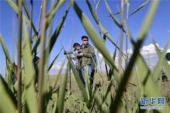 9月24日,青海湖國家級自然保護(hù)區(qū)管理局的巡湖觀測人員在青海湖畔的哈達(dá)灘濕地觀測歸來。