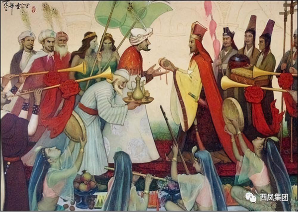酒除了是國家祭祀必不可少的重要部分外,也在商業(yè)賦稅和人們情感交流中承擔(dān)著重要地位。陜西西安(古長安)是古絲綢之路的起點(diǎn),鳳翔是古絲綢之路的重要驛站,西鳳酒自漢代以來就作為饋贈友邦、域外交流的國禮。史書記載,唐儀鳳(公元676年)年間的一個陽春三月,吏部侍郎裴行儉護(hù)送波斯王子泥涅師回國途中,行至鳳翔縣城以西的亭子頭村附近,發(fā)現(xiàn)柳林鎮(zhèn)窖藏陳酒香氣將五里地外亭子頭的蜜蜂蝴蝶醉倒的奇景,即興吟詩贊嘆曰:“送客亭子頭,蜂醉蝶不舞;三陽開國泰,美哉柳林酒”,并以此詩贈送王子。