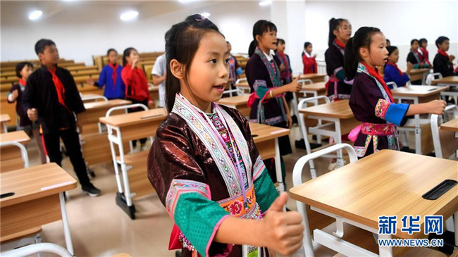 這是廣西三江侗族自治縣江川小學(xué)學(xué)生在學(xué)唱侗戲(10月14日攝)。 新華社記者張愛林攝