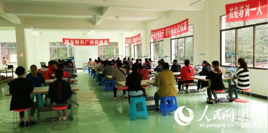 農(nóng)村貧困人口要脫貧,首先必須掌握實用技能。為解決集中安置點村民的就業(yè)問題,馬邊利用浙江省紹興市越城區(qū)東西部扶貧援助資金500萬元,修建了雪口山扶貧車間,引進浙江紹興勇大針紡工藝有限公司投資建設(shè)服裝廠,讓貧困戶提高技能,就近就業(yè)。