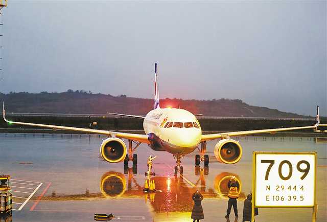 2018年12月30日凌晨,利用中新(重慶)互聯(lián)互通項(xiàng)目和自由貿(mào)易疊加優(yōu)勢(shì),重慶航空引進(jìn)的第五架空客A320neo飛機(jī)抵達(dá)江北國際機(jī)場(chǎng)。 (重慶航空供圖)