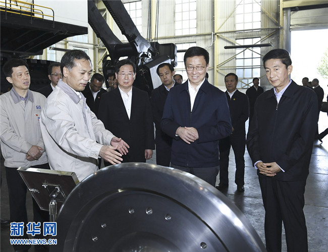 太原重型機械集團(tuán)有限責(zé)任公司是新中國自行設(shè)計建設(shè)的第一座重型機械廠。韓正來到這里,考察礦山挖掘機、高鐵輪對等先進(jìn)機械研發(fā)生產(chǎn)情況。韓正強調(diào),重型機械是國之重器,是先進(jìn)制造業(yè)的重要支撐,要加快產(chǎn)品智能化步伐,提高生產(chǎn)線和生產(chǎn)設(shè)備的國產(chǎn)化率,實現(xiàn)精密零部件加工的技術(shù)突破,積極拓展“一帶一路”沿線國家市場,加強人才隊伍建設(shè),打造具有國際競爭力的高端裝備制造產(chǎn)業(yè)。韓正走進(jìn)生產(chǎn)車間,勉勵一線工人抓住轉(zhuǎn)型升級機遇,推動企業(yè)加快發(fā)展,實現(xiàn)個人價值。