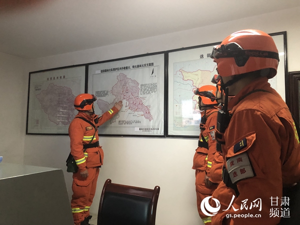 甘肅省森林消防指戰(zhàn)員正進(jìn)行相關(guān)部署。(甘肅省森林消防總隊(duì)供圖)