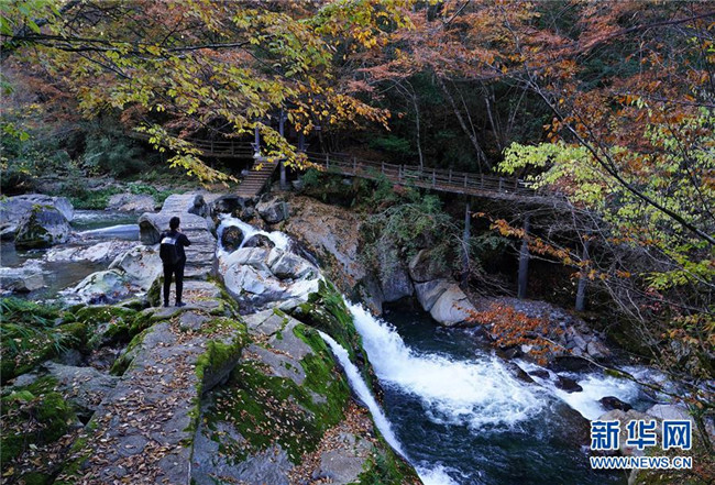 陜西嵐皋縣地處大巴山北麓,境內(nèi)山水相依,美景薈萃。時(shí)下,這里層林盡染,秋光瀲滟,云霧繚繞,宛如仙境。 新華社記者 邵瑞 攝