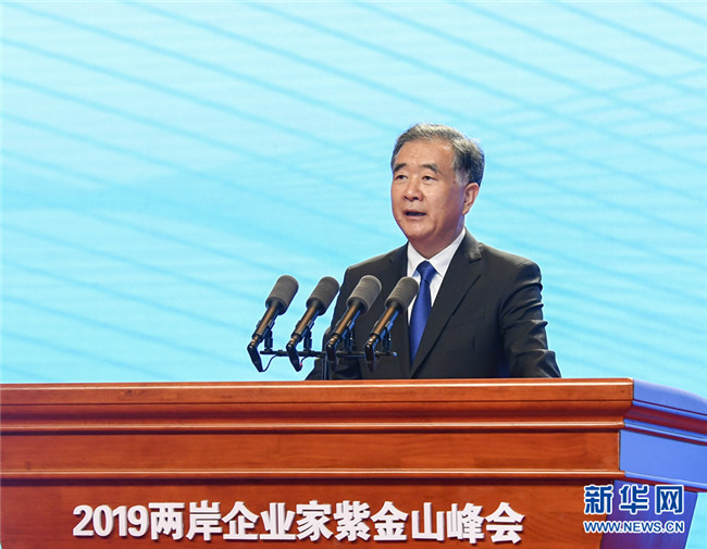 2019兩岸企業(yè)家紫金山峰會4日在江蘇南京舉行。中共中央政治局常委、全國政協(xié)主席汪洋出席并發(fā)表演講。