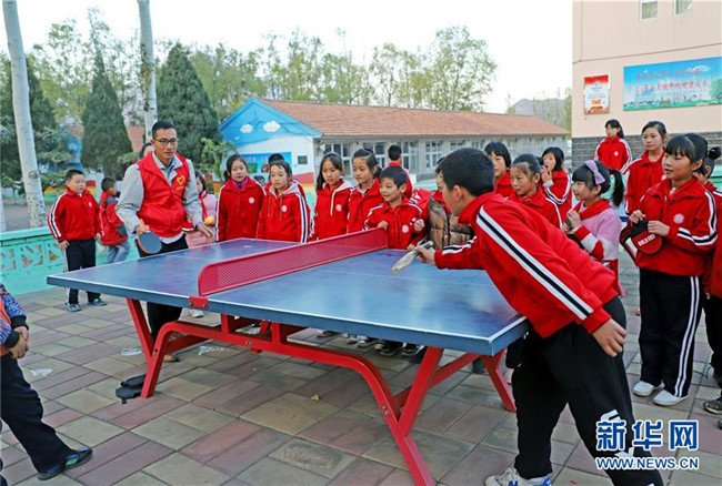 11月4日,支教志愿者與學生們一起打乒乓球。 新華社記者 金良快 攝