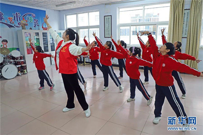 11月4日,支教志愿者教學生們跳舞。新華社記者 金良快 攝