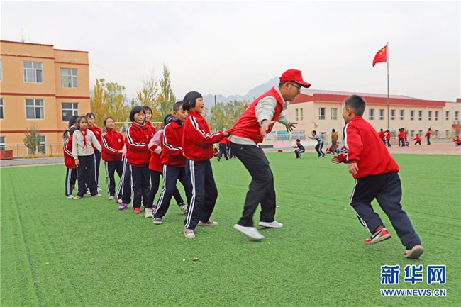 11月4日,支教志愿者與學生們一起做游戲。新華社記者 金良快 攝
