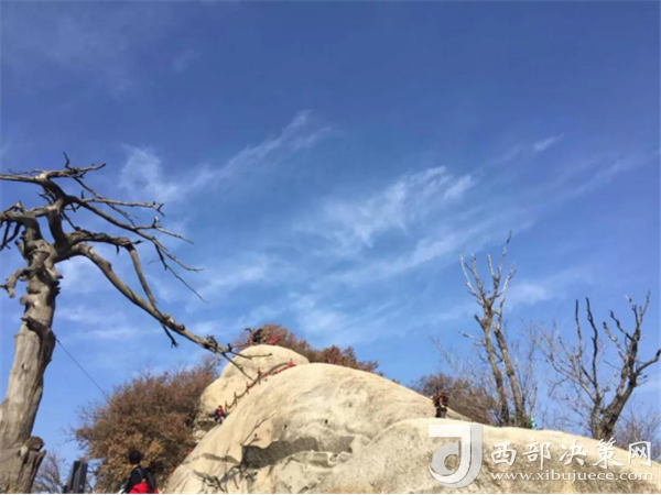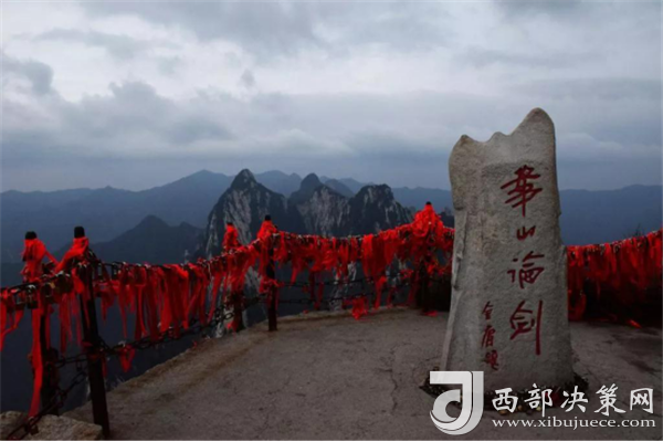 說(shuō)到北峰,不可不提的自然是華山論劍了,在峰頂有一塊石牌,上面是金庸先生親筆題寫(xiě)的“華山論劍”,此處也成為游客登臨華山必到之處。
