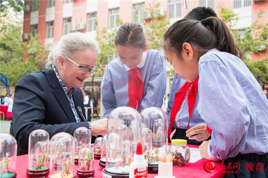 北京市朝陽區(qū)實驗小學(xué)今年舉辦“‘一帶一路’手拉手,‘一班一國’看世界”主題實踐活動,多名外國友人體驗中國傳統(tǒng)文化項目。 盧靜攝