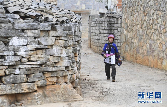 11月28日,一名大糯黑村村民行走在村口。新華社記者毛思倩攝