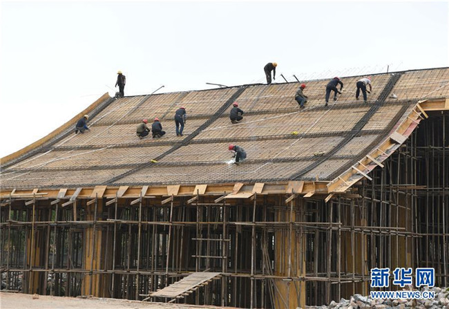 11月28日,工人們在大糯黑村的劇院建設(shè)現(xiàn)場工作。新華社記者周華攝