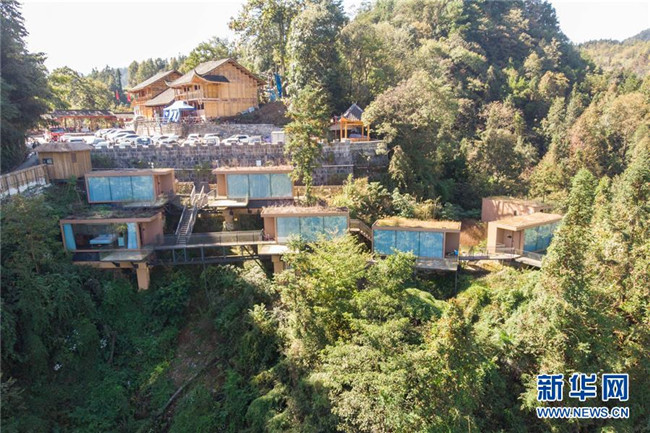 這是湖南省湘西土家族苗族自治州花垣縣十八洞村的一處民宿酒店(10月29日無人機(jī)拍攝)。新華社記者 陳思汗 攝