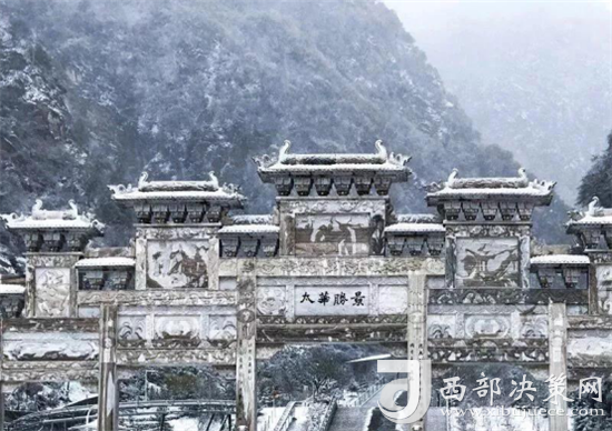 華山的雪景不僅是銀白的世界,而是猶如千姿百態(tài)的雪雕。雪霽,便有“林海玉樹”、“雪堆玉石”、“云中雪龍”、“巖崖雪屋”、“梨花飛揚”、“天女散花”、“紅帶玉墜”等各具形態(tài)的奇特景觀。