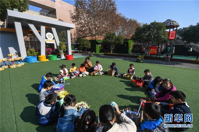 12月11日,小朋友在老師的帶領(lǐng)下繪制愛(ài)心卡片,準(zhǔn)備隨圍巾一起寄給西藏的小朋友們。 新華社記者 徐昱 攝