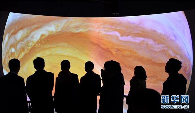 12月14日,觀眾參觀藏域星球天文科普體驗館。當(dāng)日,藏域星球天文科普體驗館在西藏拉薩開館試運營,這是西藏第一家天文科普體驗館。據(jù)介紹,此館以感知宇宙、認(rèn)知宇宙、探索宇宙為主題,以參觀者的第一感官體驗為設(shè)計導(dǎo)向,利用互動投影、懸浮投影、物體跟蹤、人體捕捉、體感互動、VR等高科技手段展示藏地的神秘,揭示宇宙的奧秘。新華社記者李鑫攝