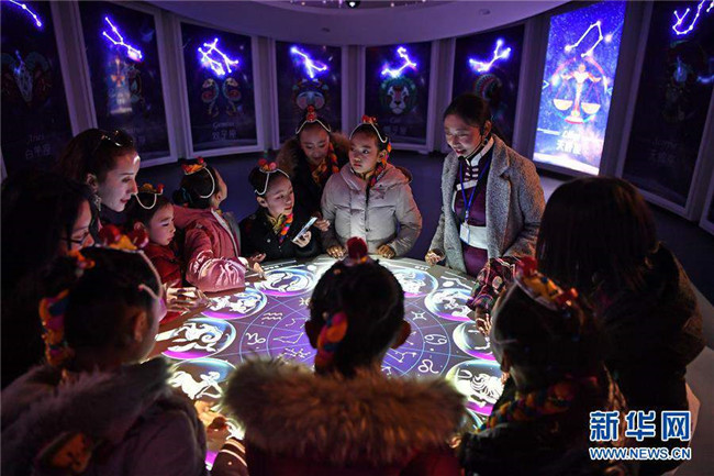 12月14日,拉薩市實驗小學(xué)學(xué)生在藏域星球天文科普體驗館學(xué)習(xí)星座知識。當(dāng)日,藏域星球天文科普體驗館在西藏拉薩開館試運營,這是西藏第一家天文科普體驗館。據(jù)介紹,此館以感知宇宙、認(rèn)知宇宙、探索宇宙為主題,以參觀者的第一感官體驗為設(shè)計導(dǎo)向,利用互動投影、懸浮投影、物體跟蹤、人體捕捉、體感互動、VR等高科技手段展示藏地的神秘,揭示宇宙的奧秘。新華社記者李鑫攝