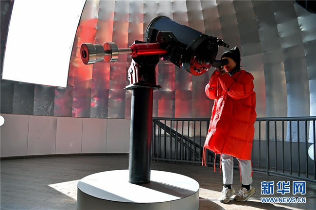 12月14日,參觀者在藏域星球天文科普體驗館體驗天文望遠(yuǎn)鏡觀測。當(dāng)日,藏域星球天文科普體驗館在西藏拉薩開館試運營,這是西藏第一家天文科普體驗館。據(jù)介紹,此館以感知宇宙、認(rèn)知宇宙、探索宇宙為主題,以參觀者的第一感官體驗為設(shè)計導(dǎo)向,利用互動投影、懸浮投影、物體跟蹤、人體捕捉、體感互動、VR等高科技手段展示藏地的神秘,揭示宇宙的奧秘。新華社記者李鑫攝