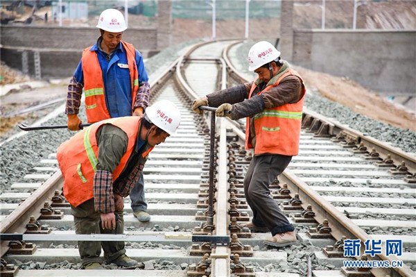 12月17日,中鐵八局建設(shè)者在改貌鐵路口岸施工。由中鐵八局承建的貴州省首個鐵路口岸——貴陽改貌鐵路口岸即將全面進(jìn)入竣工驗收階段。據(jù)悉,貴陽改貌鐵路口岸為一級開放口岸,建成投運(yùn)后將成為中歐班列的場站,年貨運(yùn)吞吐量將達(dá)120萬噸,將進(jìn)一步促進(jìn)貴州省對接“一帶一路”和“國際陸海貿(mào)易新通道”,為貴州建設(shè)內(nèi)陸開放型經(jīng)濟(jì)試驗區(qū)提供有力支撐。新華社記者劉續(xù)攝