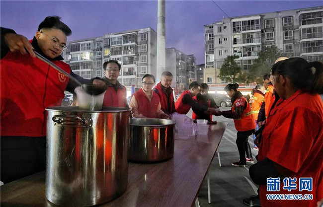 當日是冬至, 四川有喝羊湯的習俗。成都市雙流區(qū)黃甲街道100多名黨員志愿者聯合轄區(qū)內羊肉館商家、社區(qū)愛心企業(yè),開展了“暖冬靚湯行”志愿服務活動,為上百名環(huán)衛(wèi)工人、40多個困難家庭送上暖洋洋的羊肉湯。黃甲街道冬至日送羊肉湯的愛心行動已經堅持了11年。