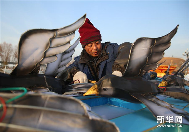 新年臨近,在寧夏銀川花博園內(nèi)工作人員正抓緊制作大型花燈,為即將舉辦的迎春燈會(huì)做準(zhǔn)備。據(jù)了解,此次迎春燈會(huì)將于2019年12月31日至2020年2月9日在銀川花博園舉辦,包括大型燈會(huì)、焰火表演、非遺展示等系列活動(dòng)。