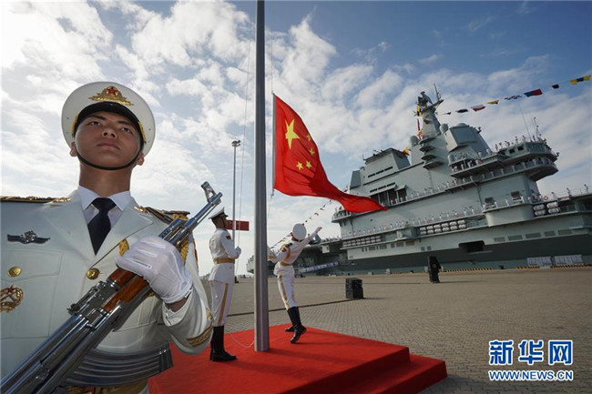 2019年12月17日,我國第一艘國產(chǎn)航空母艦山東艦在海南三亞某軍港交付海軍。經(jīng)中央軍委批準(zhǔn),我國第一艘國產(chǎn)航母命名為“中國人民解放軍海軍山東艦”,舷號(hào)為“17”。這是交接入列儀式現(xiàn)場。 新華社記者 李剛 攝