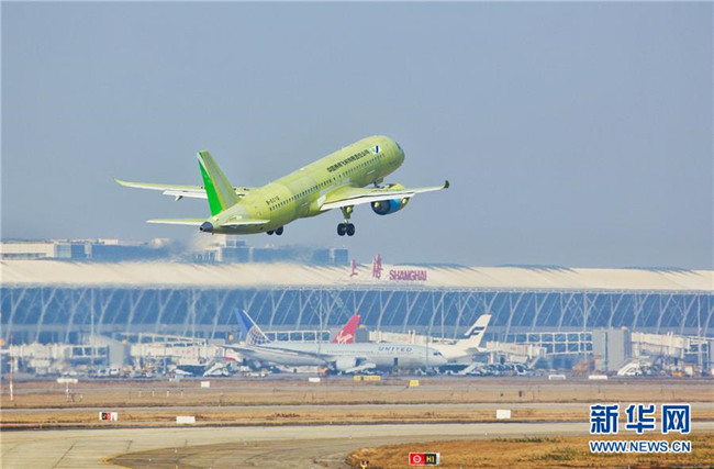 2019年12月27日,C919大型客機(jī)106架機(jī)在上海浦東機(jī)場起飛。 新華社發(fā)