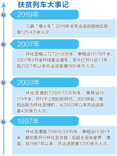 今年春運(yùn)期間,為方便沿線村鎮(zhèn)群眾出行,在焦柳線、渝懷線和滬昆線鐵路上,廣鐵集團(tuán)開行的懷化至重慶梅江7272/7271次、懷化至澧縣7266/7267次、懷化至塘豹7269/7270次列車均不停運(yùn),每站必停。寒來暑往,幾趟“扶貧公益慢火車”已經(jīng)相繼運(yùn)行了幾十年,票價(jià)最低1元,一直沒有漲過價(jià)。