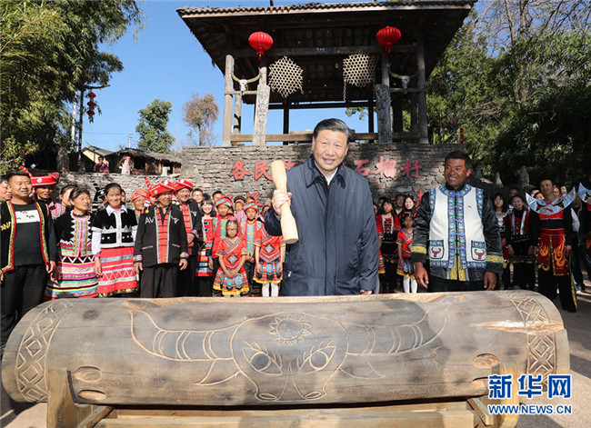 春節(jié)前夕,中共中央總書記、國(guó)家主席、中央軍委主席習(xí)近平赴云南考察,看望慰問基層干部群眾。這是1月19日下午,習(xí)近平來到騰沖市清水鄉(xiāng)三家村中寨司莫拉佤族村看望鄉(xiāng)親們,了解脫貧攻堅(jiān)情況,并向大家送上新春祝福。 新華社記者 鞠鵬 攝