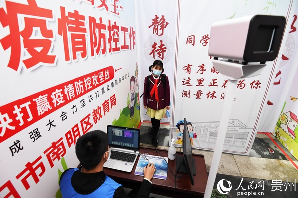 “學(xué)生進(jìn)校之前,要對學(xué)生和全體教職員工建起一人一檔的健康檔案,了解學(xué)生和他的家庭成員以及親密接觸人員的健康狀況,進(jìn)行逐一排查。到學(xué)生進(jìn)校的時候,對每一位學(xué)生,每一位教職員工都要進(jìn)行體溫檢測,還要讓他們掃‘貴州健康碼’,了解學(xué)生的行蹤和健康狀況,保障學(xué)生在學(xué)校里面健康學(xué)習(xí)。”宋旗學(xué)校校長陳孝勇說。