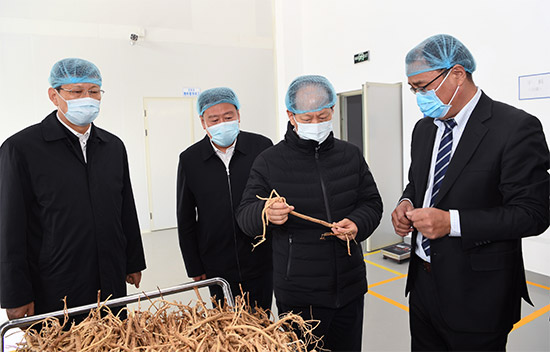 3月24日,自治區(qū)黨委書記、人大常委會主任石泰峰來到赤峰市內(nèi)蒙古恒光大藥業(yè)有限公司,走進(jìn)生產(chǎn)車間,察看生產(chǎn)運行情況。內(nèi)蒙古日報社融媒體記者 袁永紅 攝