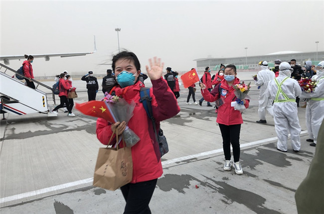 醫(yī)療隊(duì)員揮手致意。高嘉蔚 攝
