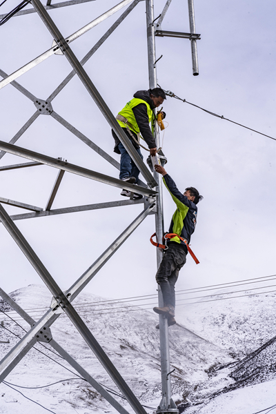 在距離當雄縣城約80公里左右的烏瑪塘鄉(xiāng)巴嘎村,中國電信集團拉薩分公司當雄電信局的技術人員在調試基站設備(3月6日攝)。新華社記者 孫非/攝