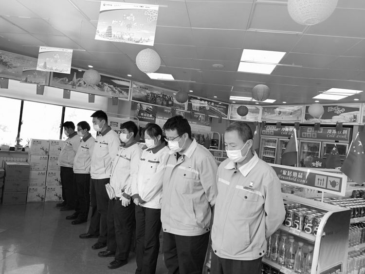 4月4日10時(shí),分公司機(jī)關(guān)、各區(qū)域和加油站有懸掛國(guó)旗的全部下半旗志哀,員工默哀3分鐘,在確保安全和正常經(jīng)營(yíng)秩序的前提下,部分加油站組織進(jìn)站車(chē)輛鳴笛志哀。