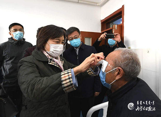 4月8日,2020年全區(qū)“光明行”社會公益活動在通遼市科左中旗啟動。自治區(qū)主席、自治區(qū)紅十字會名譽會長、全區(qū)“光明行”社會公益活動組委會主任委員布小林出席啟動儀式,并為術(shù)后白內(nèi)障患者取下紗布。內(nèi)蒙古日報社融媒體記者 韓卿立攝