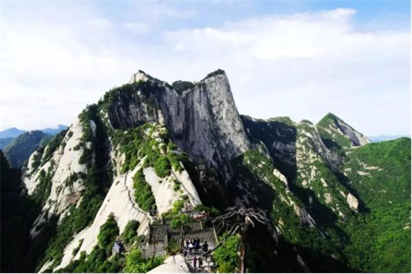 華山自誕生之日起,就有別于秦嶺其他山峰。地殼在運動時,偶然形成了這一塊完整碩大的花崗巖,伴隨著轟鳴聲,這塊巨大的花崗巖從地殼中涌出,并崩裂成五塊:東南西北中五座山峰,遠(yuǎn)看貌似蓮花,古代花、華想通,因而被稱為華山。